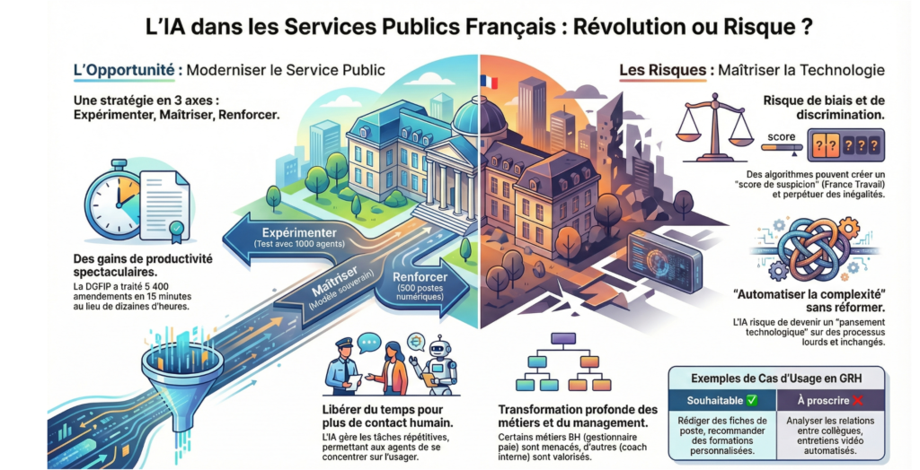 Cet article s’appuie sur des documents publics, des rapports institutionnels et des travaux de recherche portant sur l’usage de l’intelligence artificielle dans la fonction publique.
